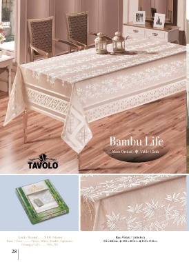 Bambu Life Masa Örtüsü s Table Cloth İçerik / Material ........%100 Polyester Masa Örtüsü / Tablecloth Renk / Color ......... Cream , White , Powder , Cappucino 160 x 220cm. s 160 x 260cm. s 160 x 300cm. Gramaj (g/m2 ) ........ 160 ± %5 28