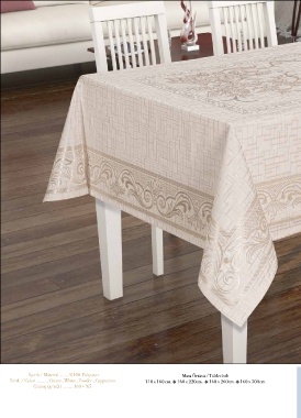 İçerik / Material ........%100 Polyester Masa Örtüsü / Tablecloth Renk / Color ......... Cream , White , Powder , Cappucino 110 x 160 cm. s 160 x 220cm. s 160 x 260cm. s 160 x 300cm. Gramaj (g/m2 ) ........ 160 ± %5